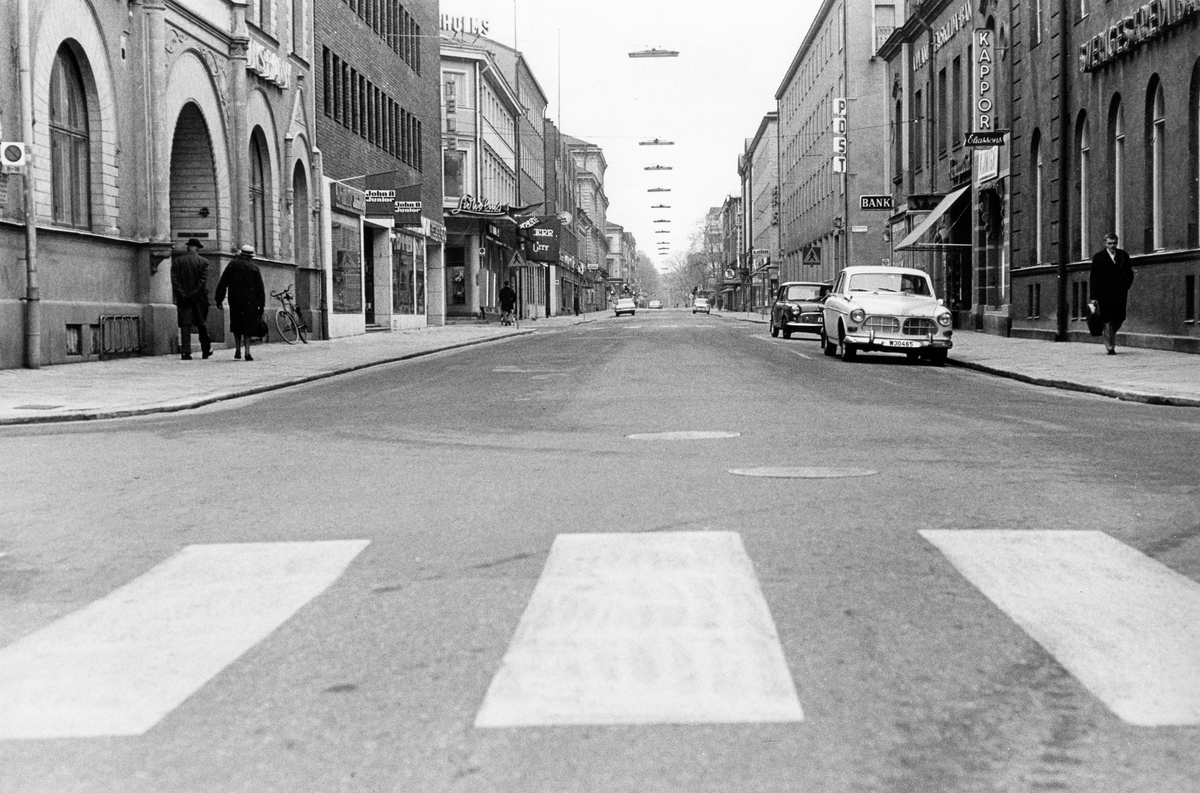 Söndagsmorgon. Drottninggatan mot Stortorget, Gävle. Från utställningen "Gävlar i stan" på Gävle Museum 1967.