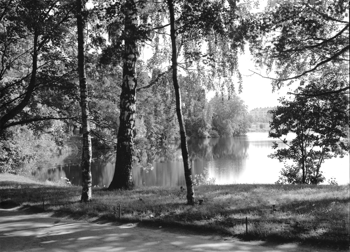 Stadsträdgården med I 14 på andra sidan Gavleån. Bilden till Gävlebygdens Turistförening 1939.