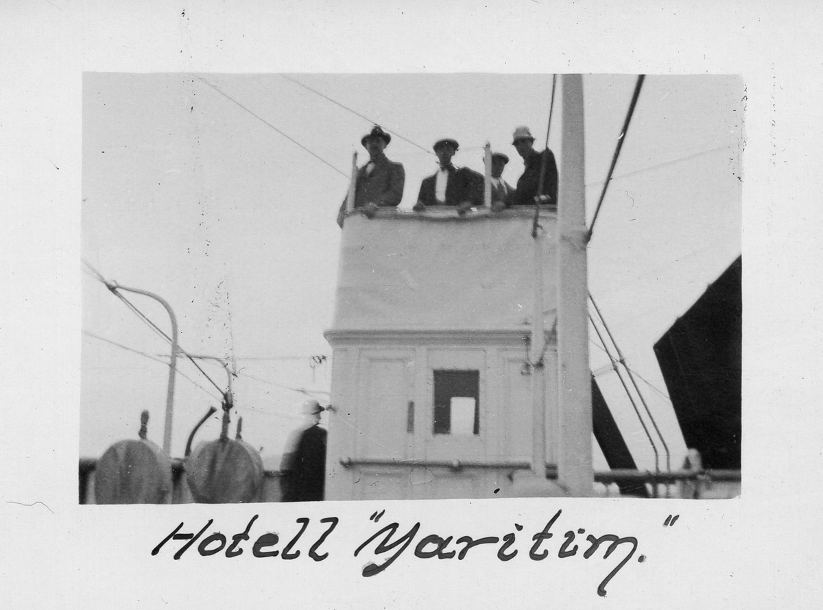 Fyra män ombord på fartyget "Maritim", troligtvis i Göteborgs hamn 1923.