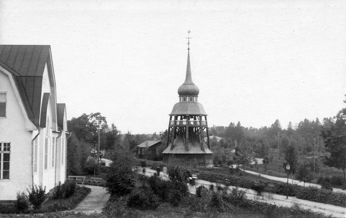 Klockstapeln och Soldatkyrkan till vänster. Bilden tagen från Reimers bostad.