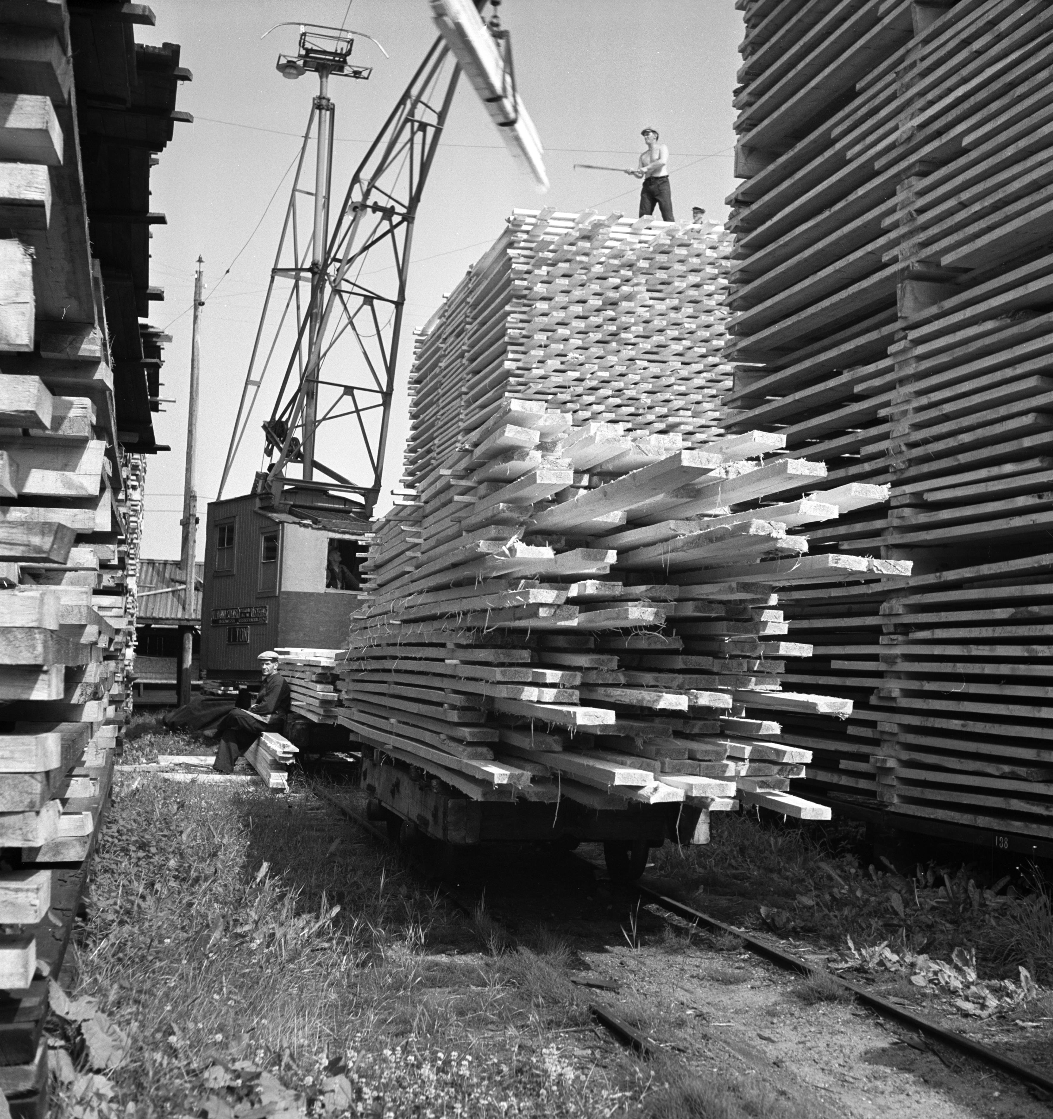 Skönviks sågverk. Lastning av brädor. Bild tagen på 1940-talet.