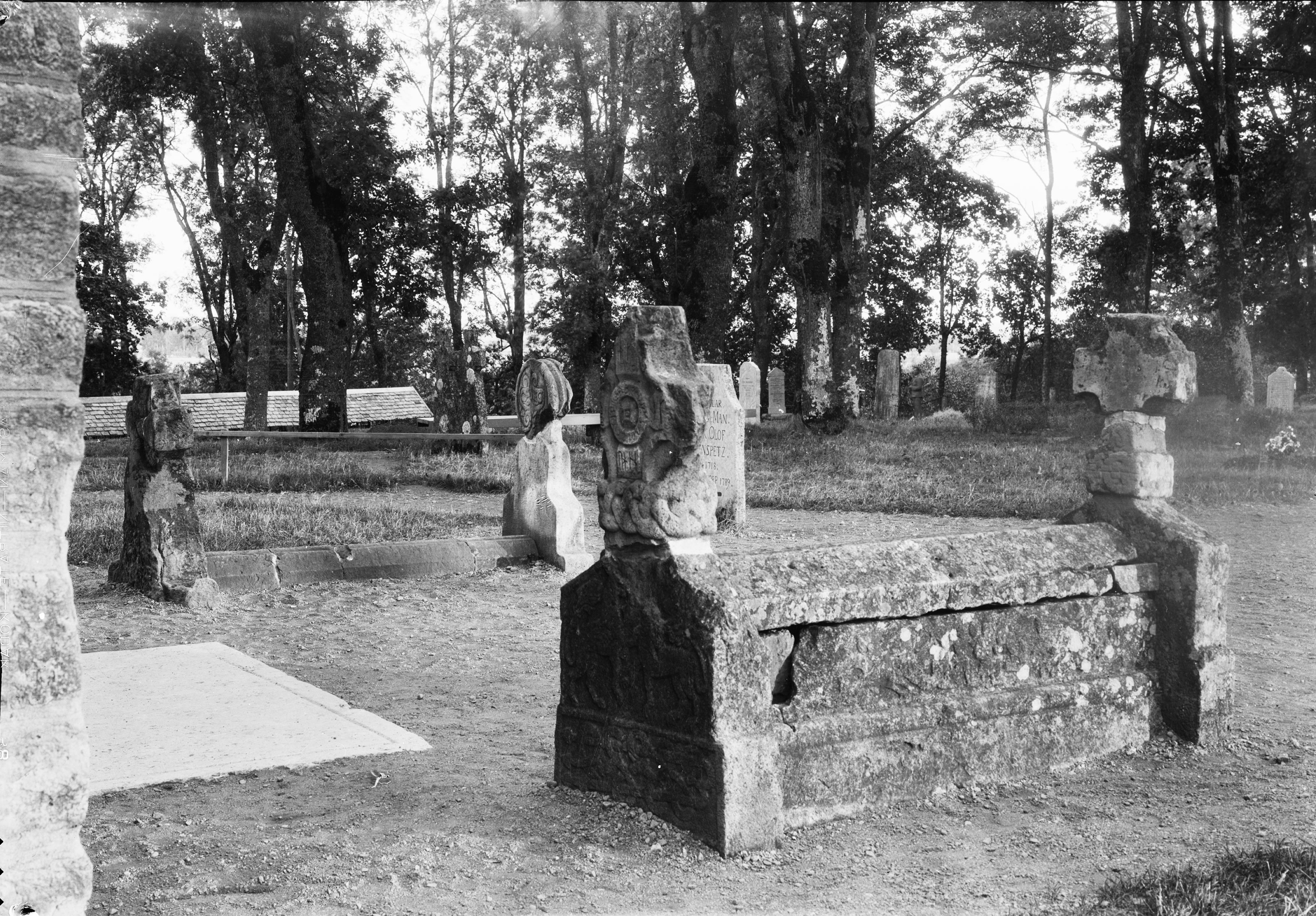 Gravmonument vid kyrkans västra sida.