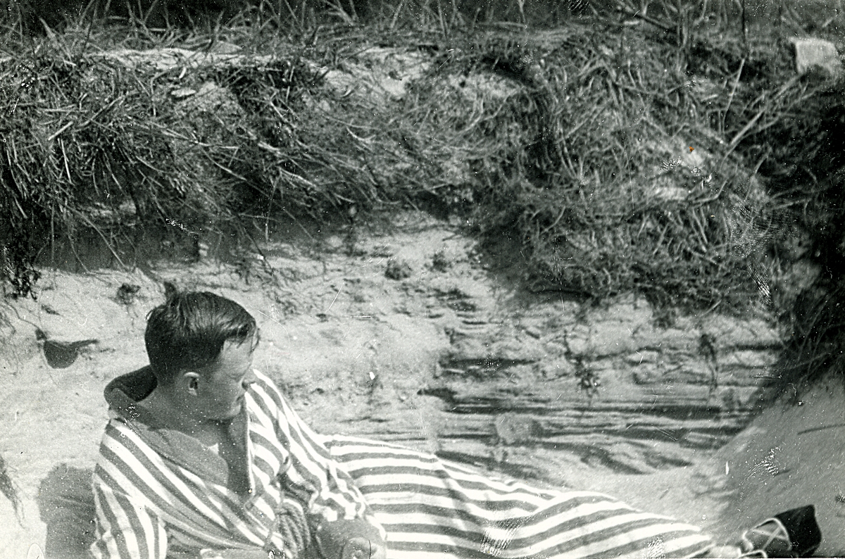 Tandläkare Gunnar Högberg på en strand i Torekov, Skåne 1922.