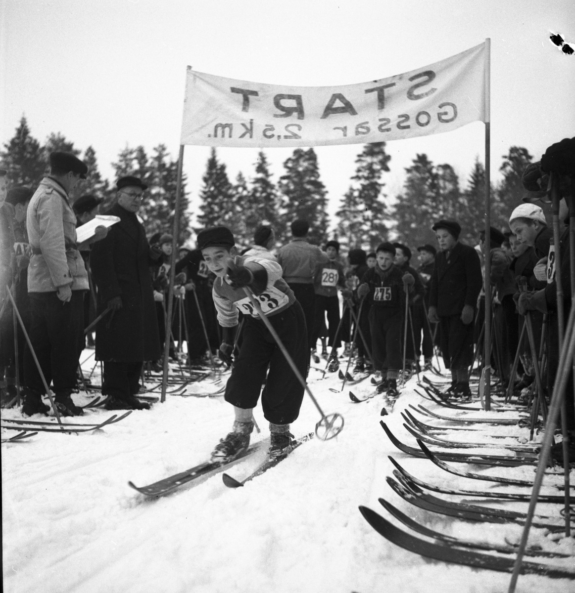 Skolungdomens fettistastävlingar på skidor. 1942
