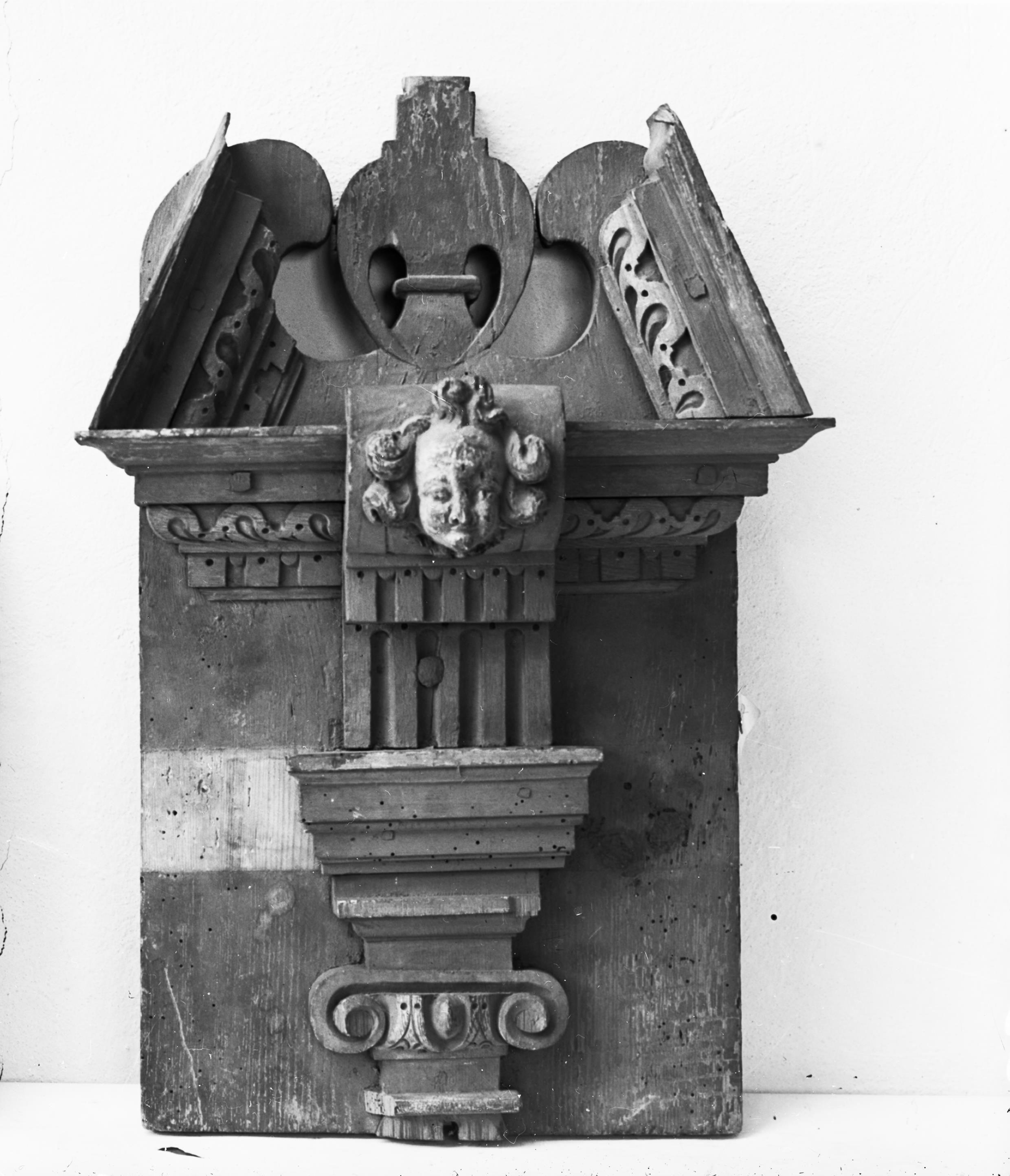 Överstycke, skulpterat i trä.