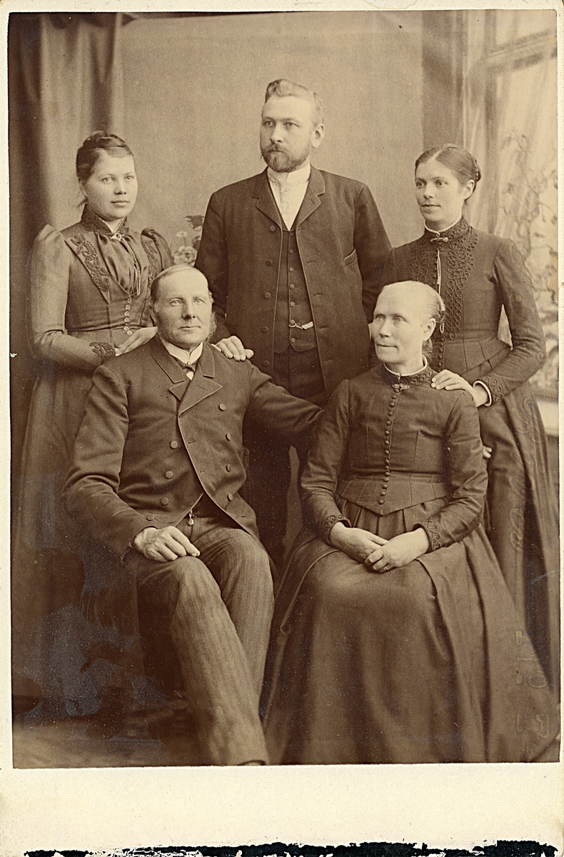 Familjeporträtt. "Moster Carin, morfar, pappa, mormor, mamma"(enligt text i album). Lars Lindgren sittande till vänster i bild.