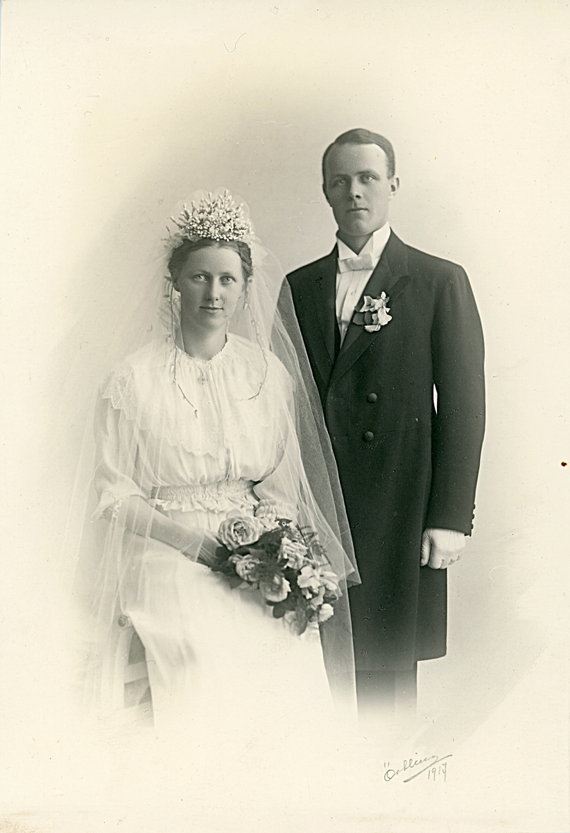 Bröllopsporträtt av Svea och Pelle Lindén, Lingbo (enligt text i album).