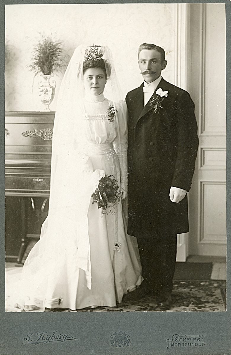 Bröllopsporträtt av Anna och Emanuel Lindström, (Totra Hamrånge?) (enligt text i album).
