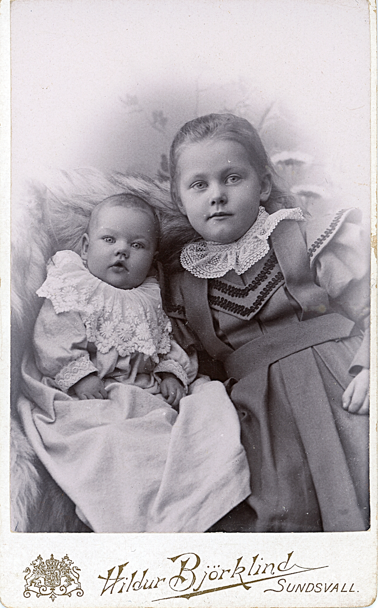 Barnporträtt. Svårtytt då det är suddigt men tyder Rut Wiklund, Lingbo, till höger (enligt text i album).