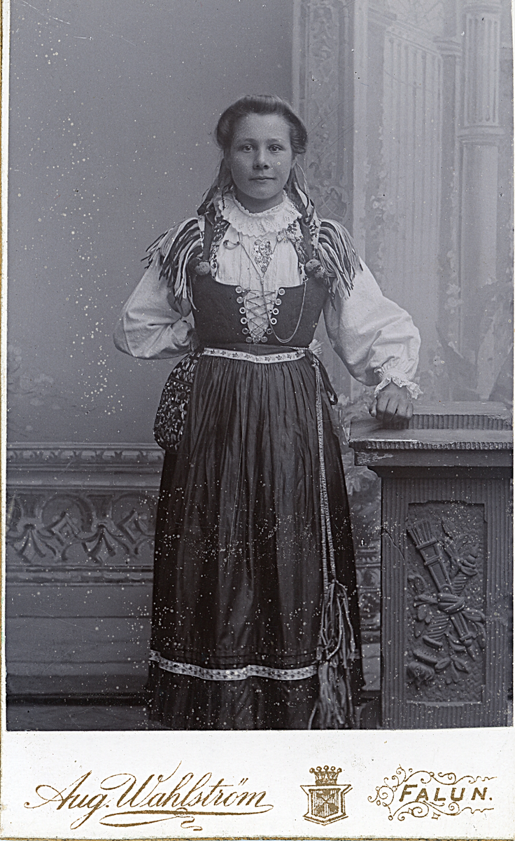 Porträtt av kvinna i folkdräkt.