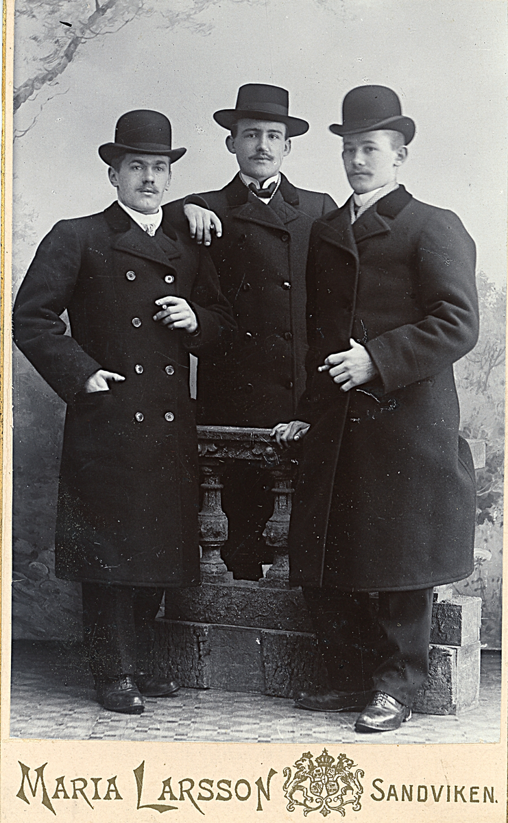 Porträtt av tre män i rock och hatt.