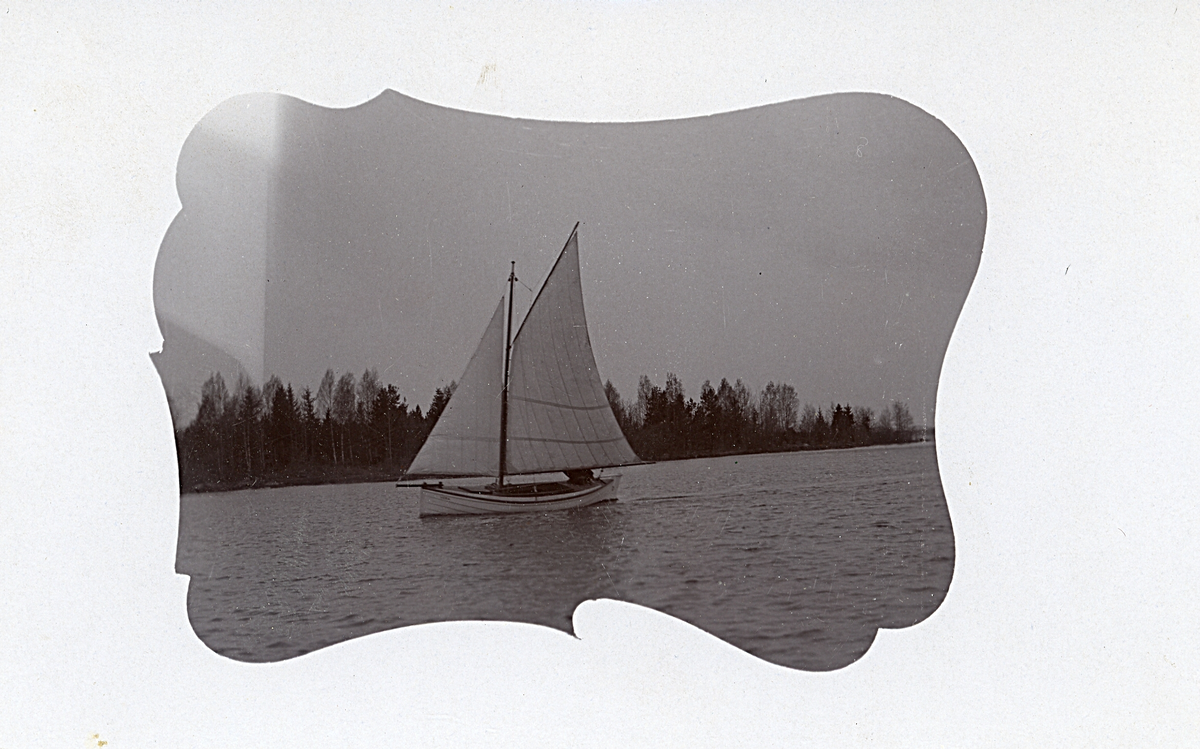Brevkort med motiv av en segelbåt ute till sjöss.