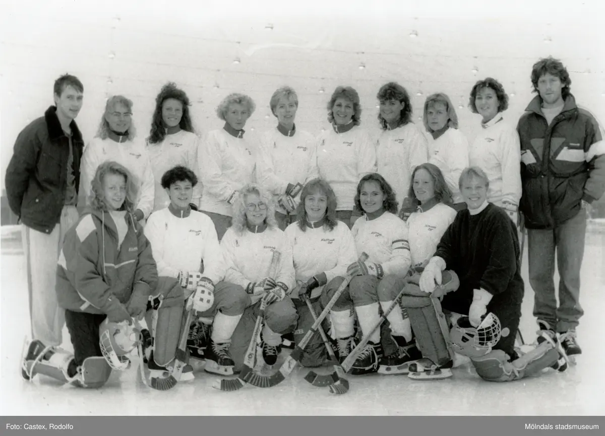 Lagbild av Kållereds Sportklubbs bandydamer, år 1989-1992. Arena okänd.