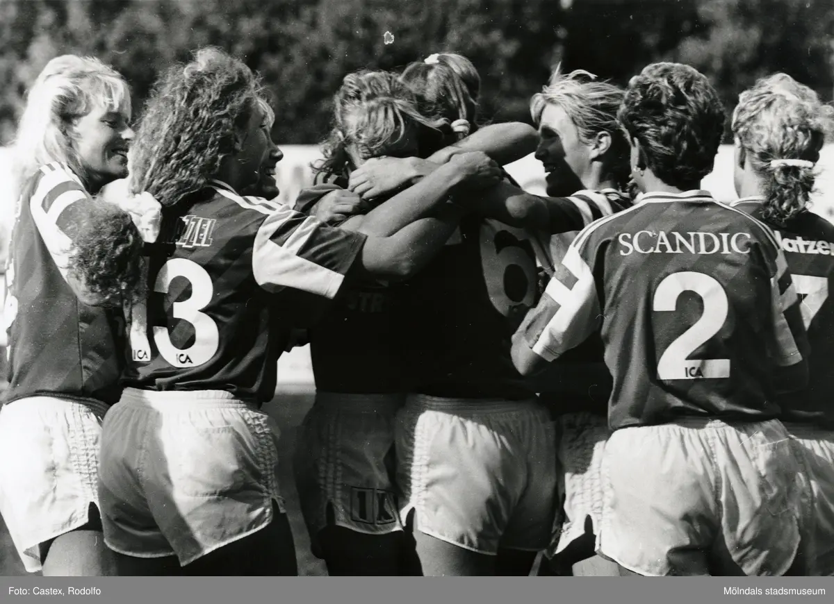 Fotbollslaget Jitex BK spelar match på Kvarnbyvallen i Mölndal, år 1991. Motståndarlag och slutresultat är okända.