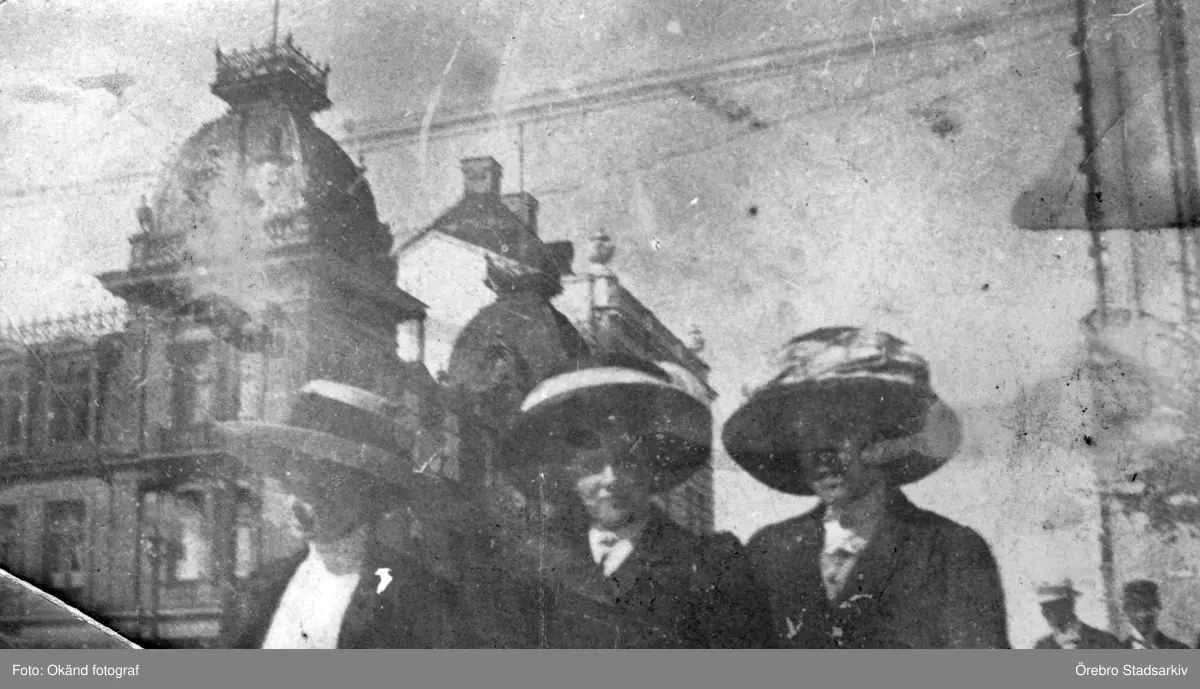 Tre kvinnor vid Edwalls hörna på Drottninggatan, 1900 ca