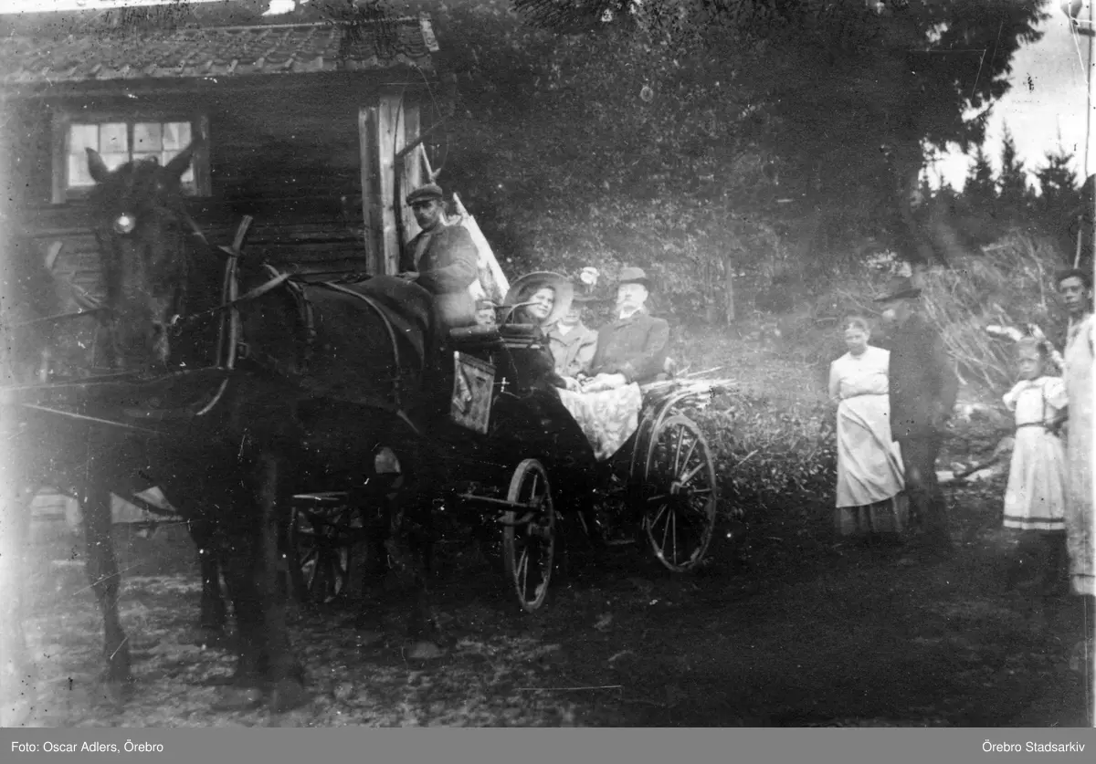 Dräng kör herrskap i hästdragen vagn i Västgöthyttan, 1912