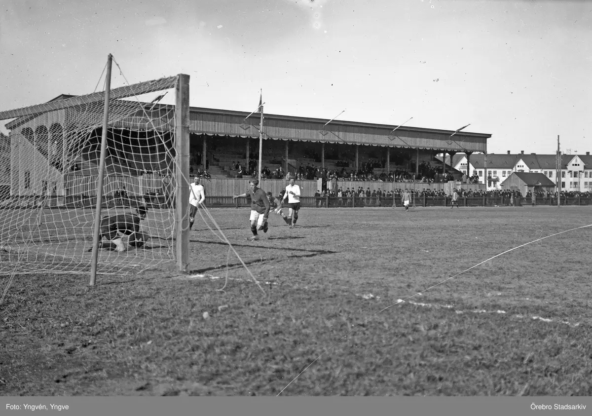 Titel: Fotbollsmatch på Eyravallen, 1920-tal