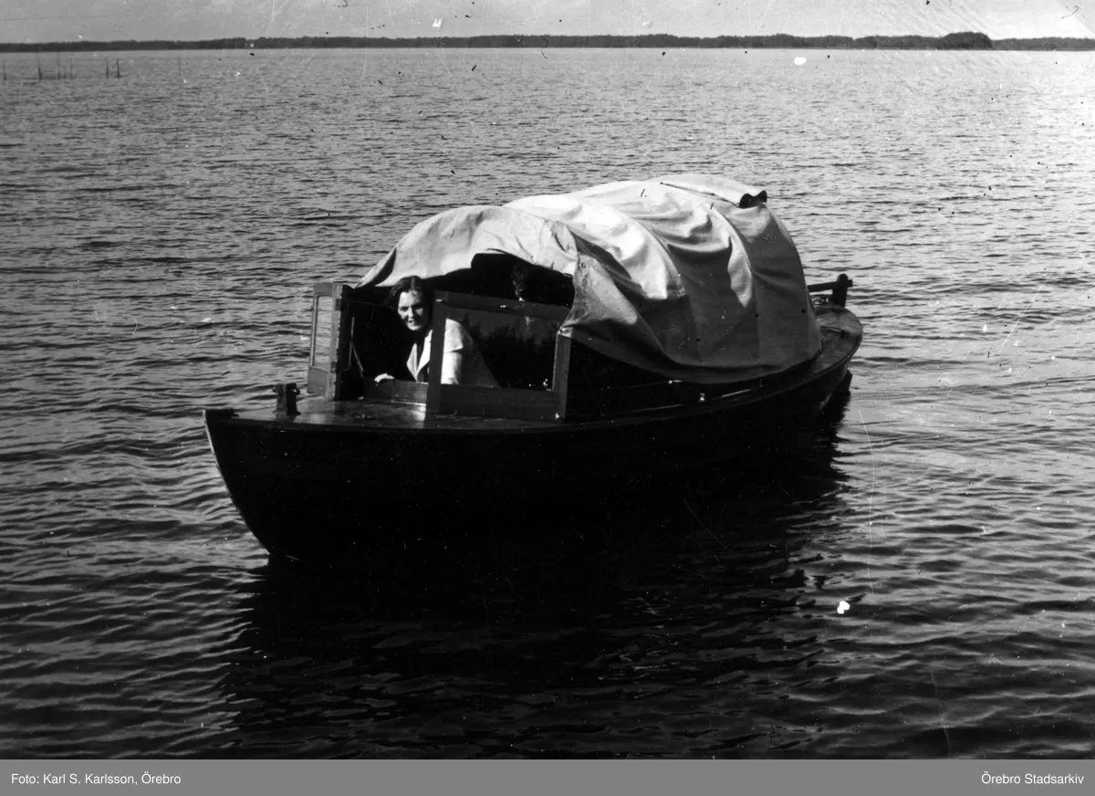 Kvinna i övertäckt båt, 1936 ca