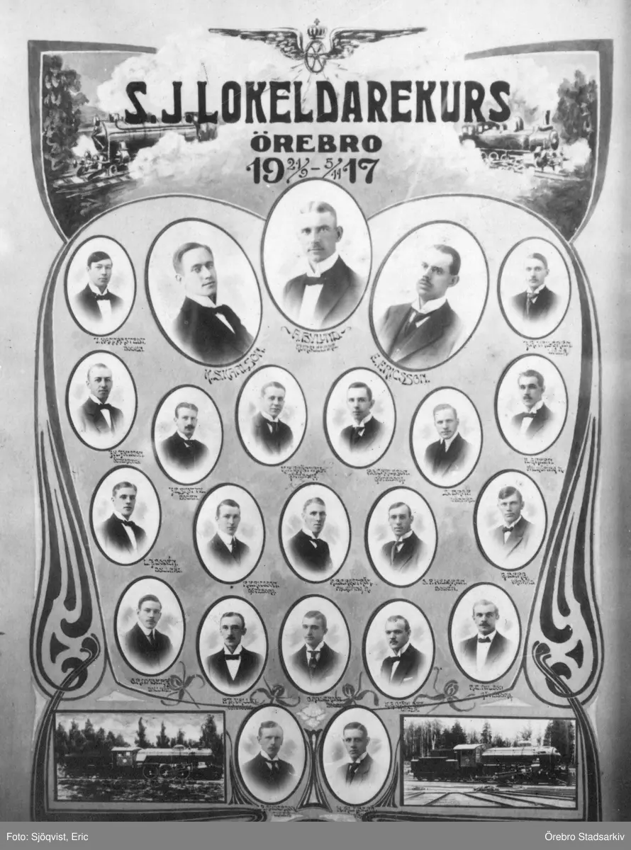 Montage över deltagare i SJ's lokeldarekurs, 1917