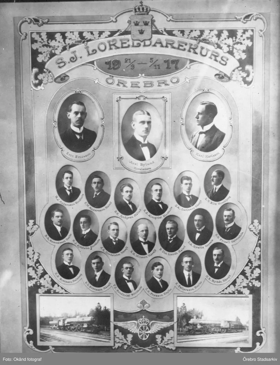 Kollage över deltagare i SJ's lokeldarekurs, 1917