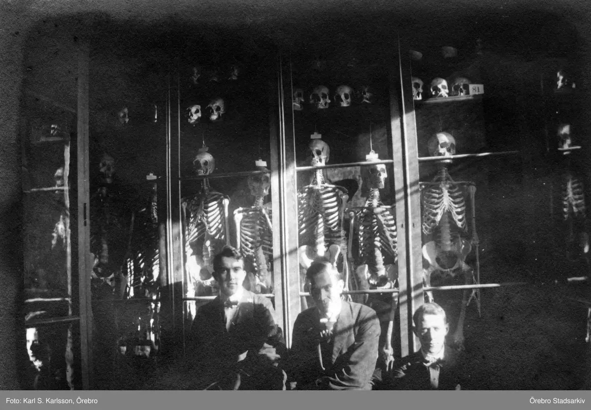 Läkarstudenter framför medicinska skelett, Uppsala, 1919