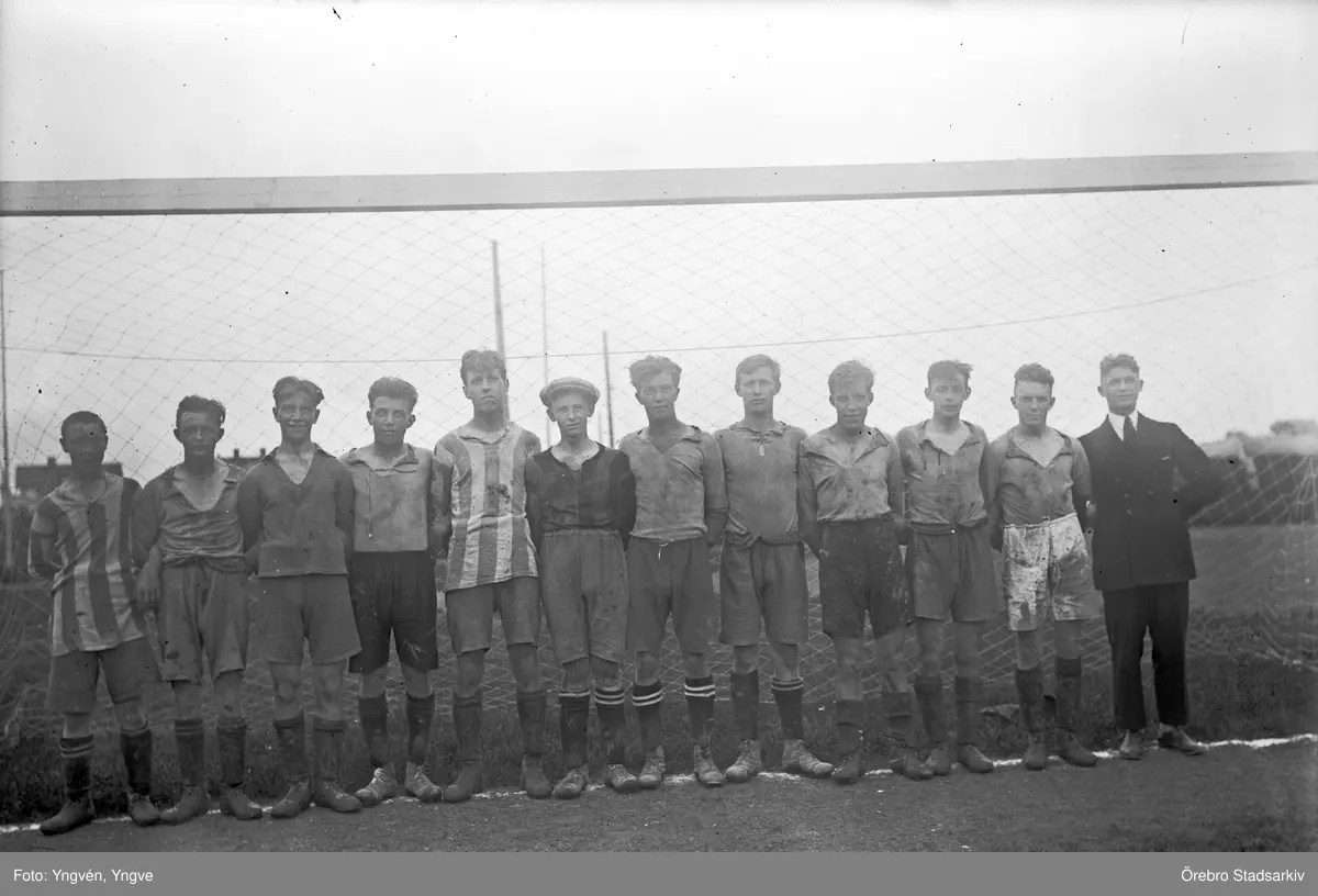 Skitiga fotbollspelare efter match i Örebro, 1920-tal