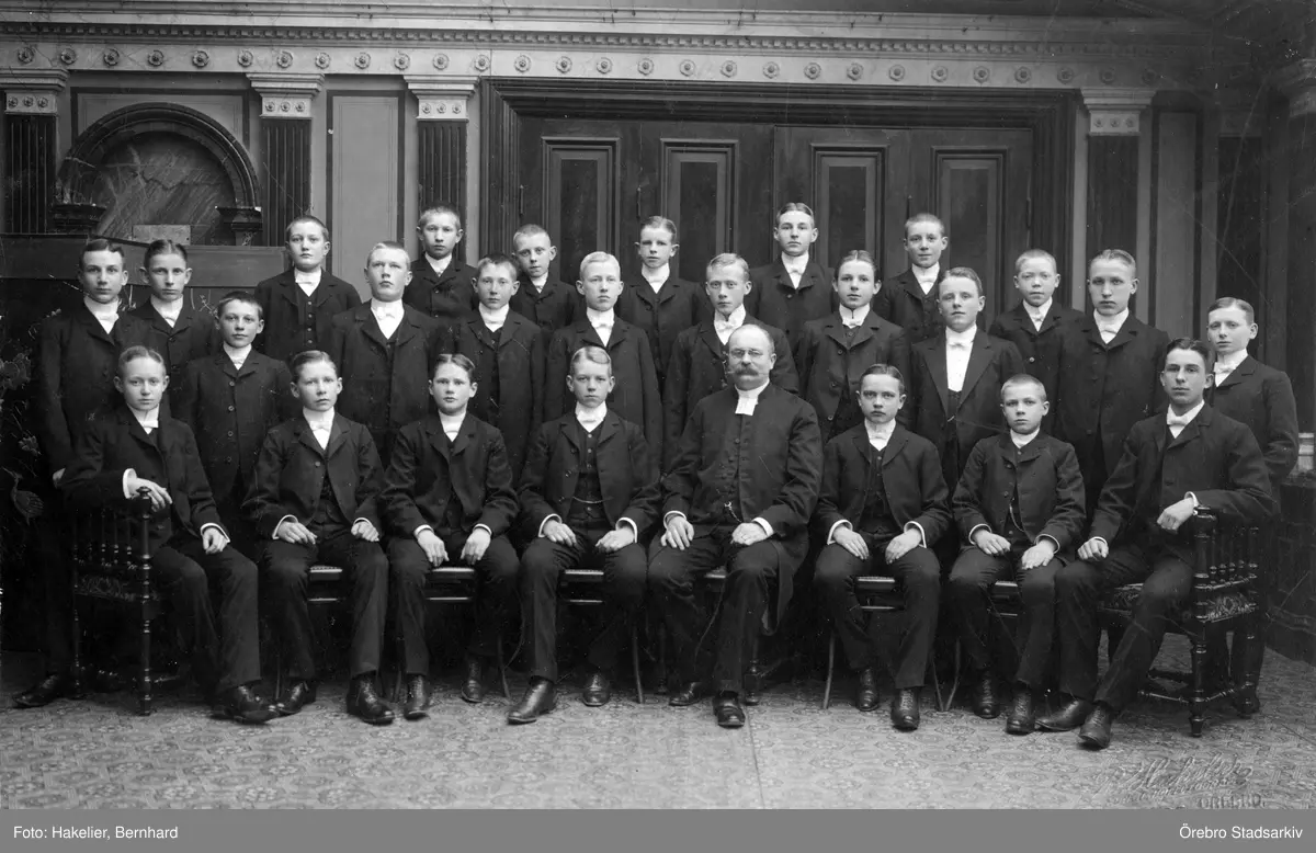 Skolklass på Karolinska Läroverket på Olaigatan, Skolgatan, 1907