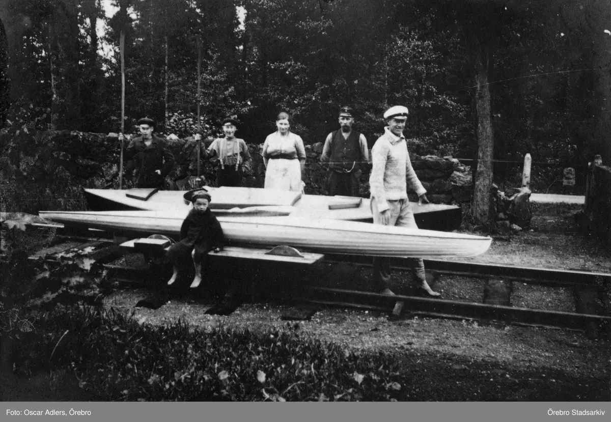 Kajaker på dressin mellan sjöarna Kolsnaren och Viren, Baggetorp, 1921