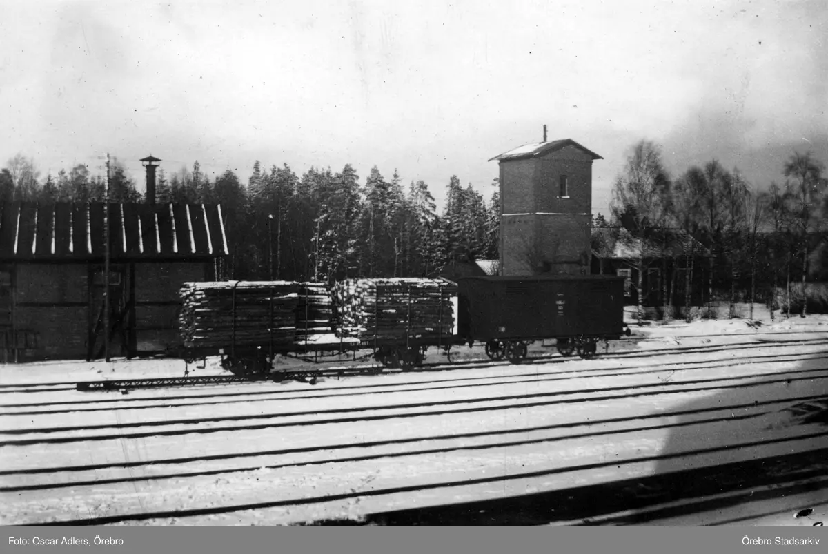 Godsvagn med timmerlast på Strömtorps bangård, Degerfors, 1915