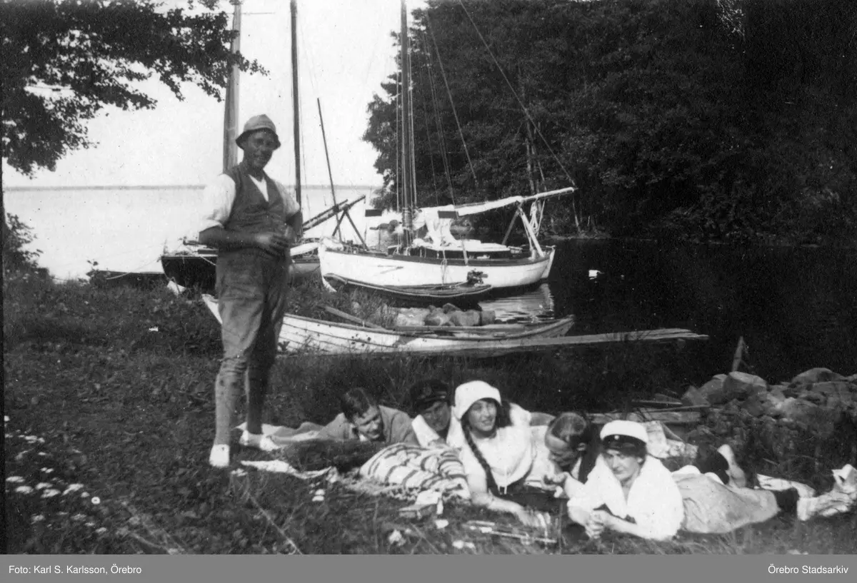 Familjen Edgren vilar i gräset vid Björksundet, 1919
