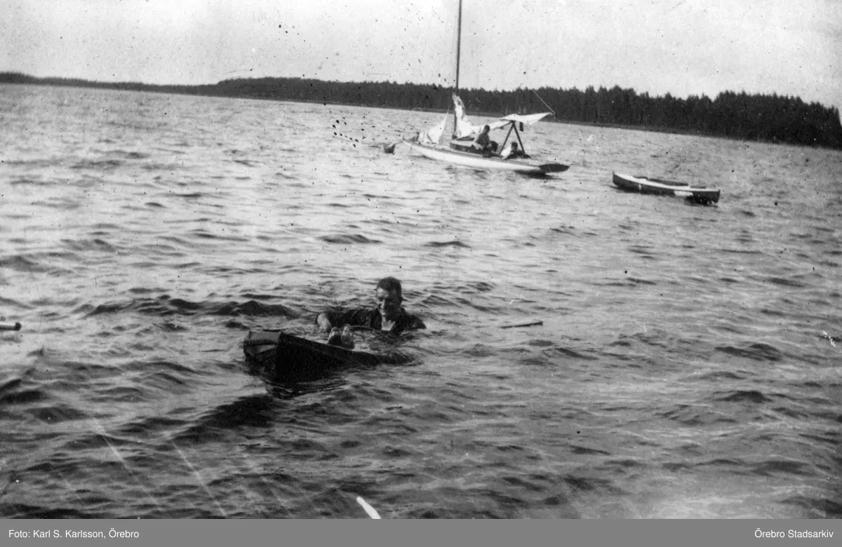 Sjunkande roddbåt utanför Hjälmarbaden, 1919