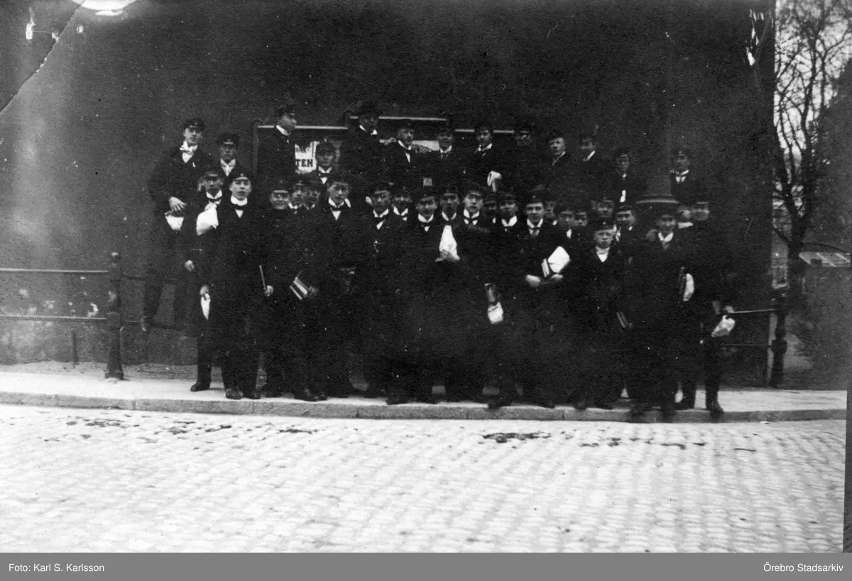 Grupp av skolungdomar från Karolinska Läroverket på Kanslibron, 1906