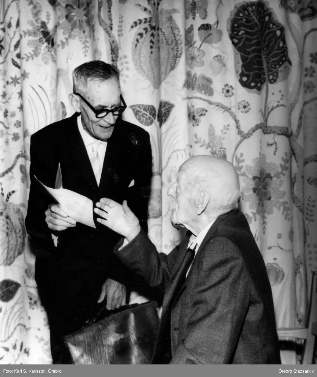 Gäst gratulerar Levi Rickson på hans 95-årsdag, 1963