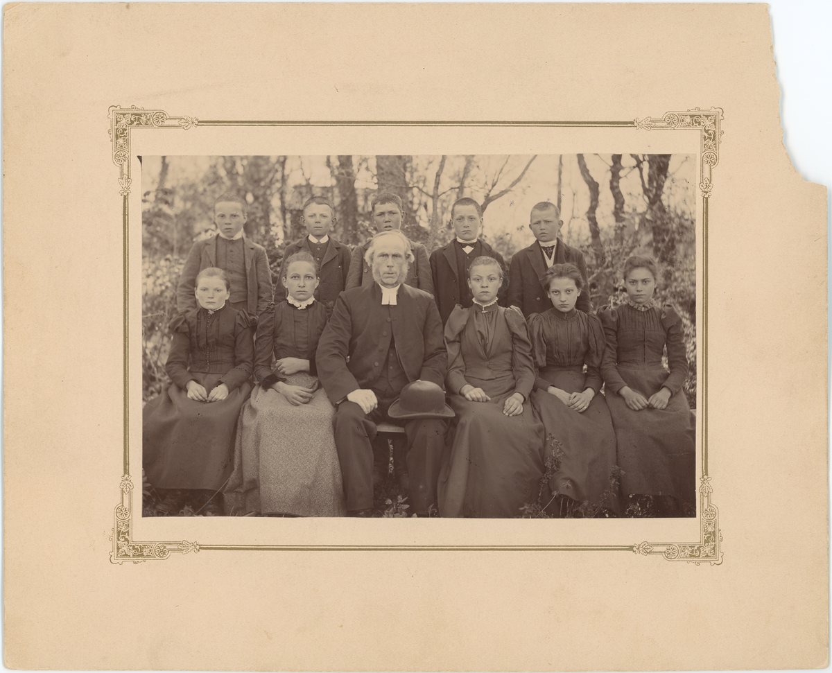 Titel: Kyrkoherde Sandén med konfirmander, Skokloster, Uppland