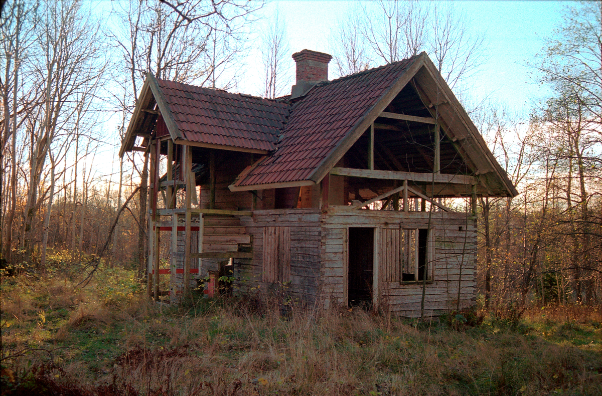 Färgelanda. Stora Linvattnet, delvis nedmonterat hus