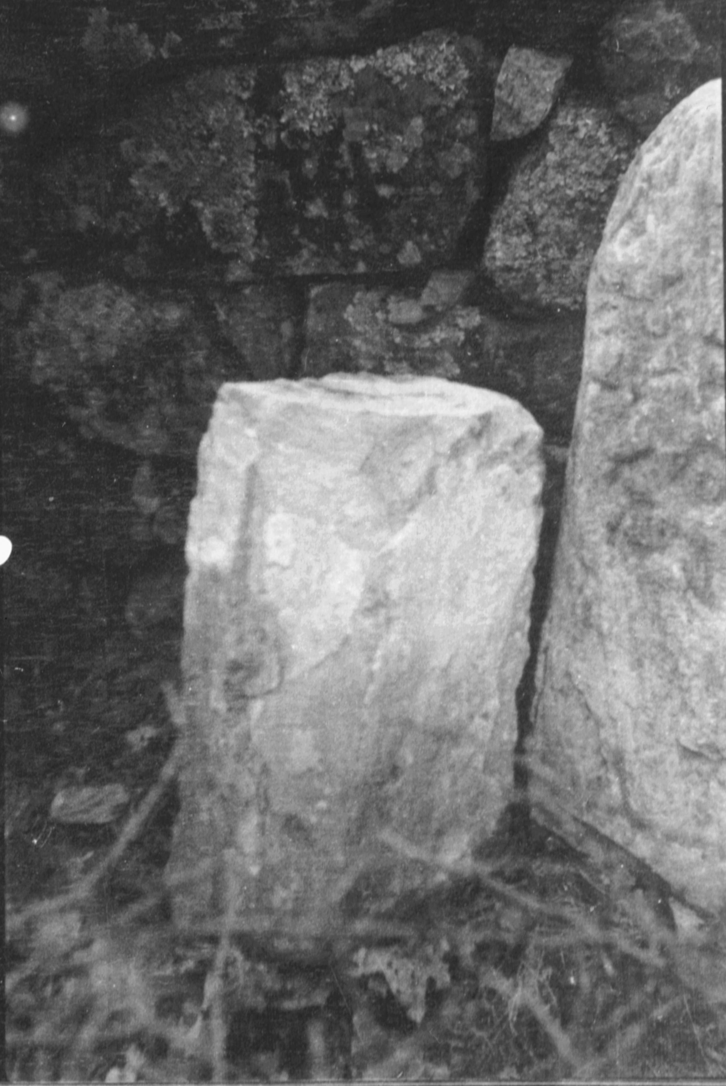 Ett av kyrkans "gotiska fönster", absidfönsterbåge placerad i gärdesgården mitt för korfönstret.