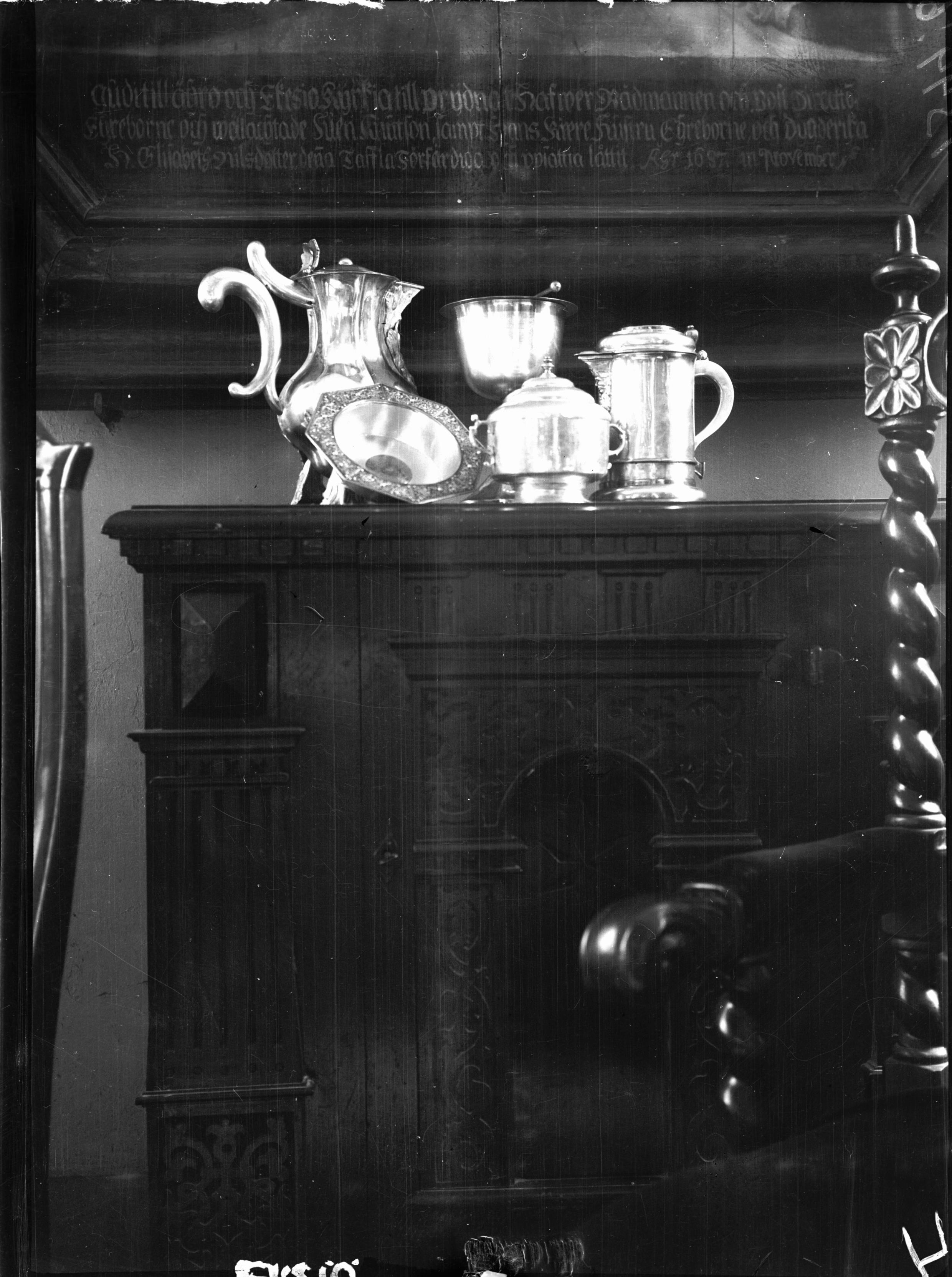 Gudstjänstutensilier av silver. Snabbinv.