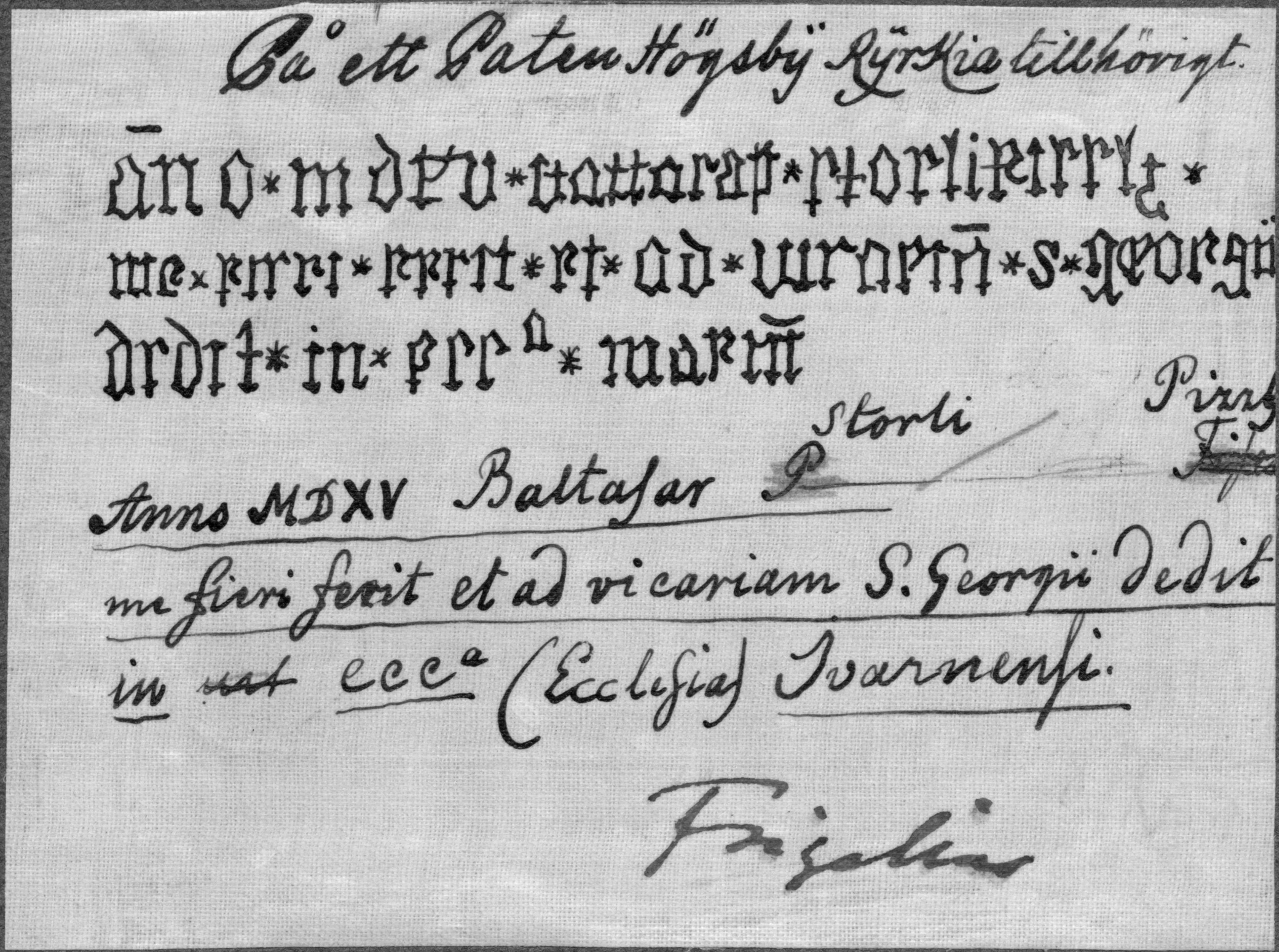 Avskrift av text på patén, kopia av Frigelius, Kalmar läroverks bibliotek.