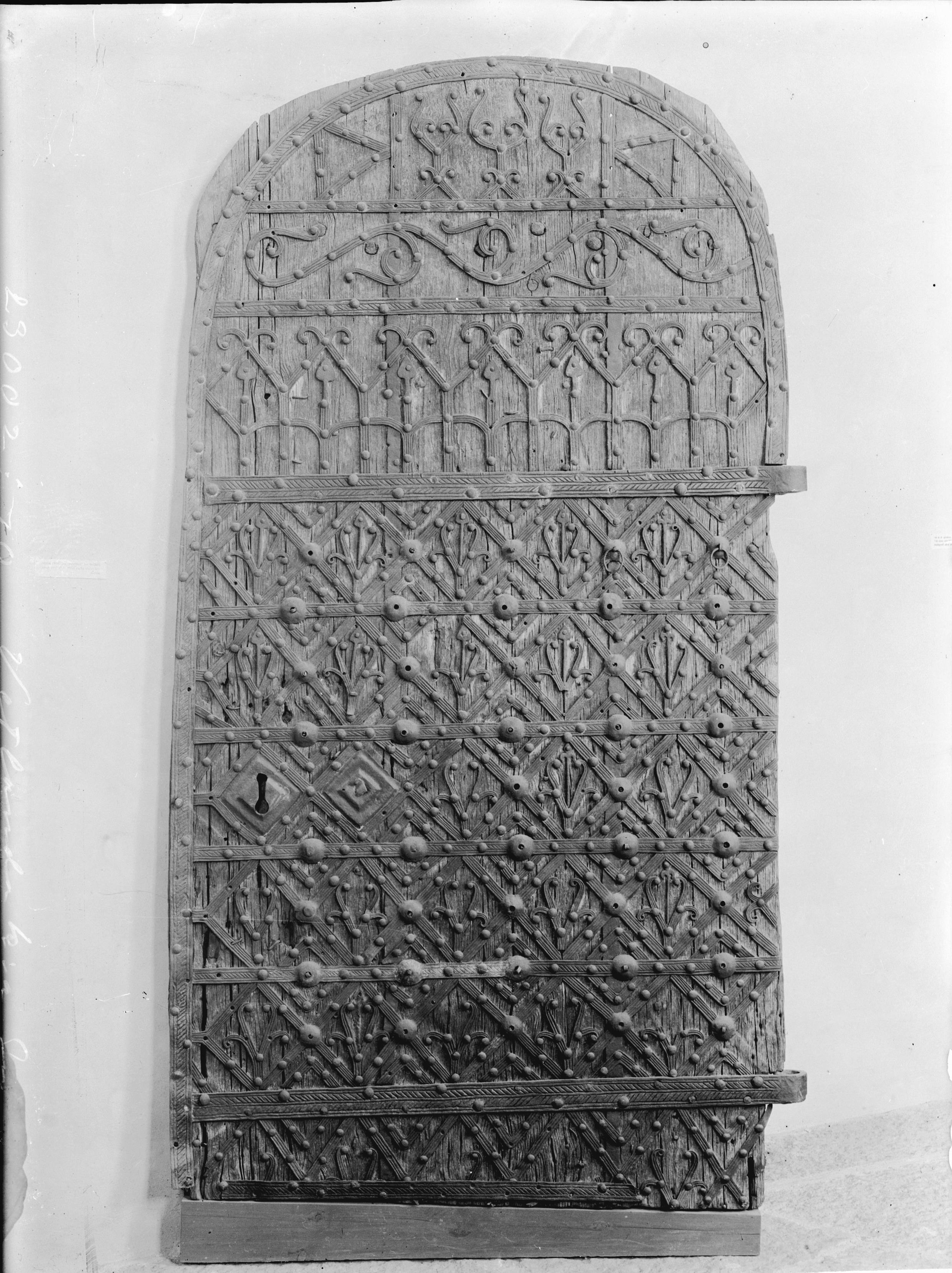 Medeltida dörr med järnbeslag.