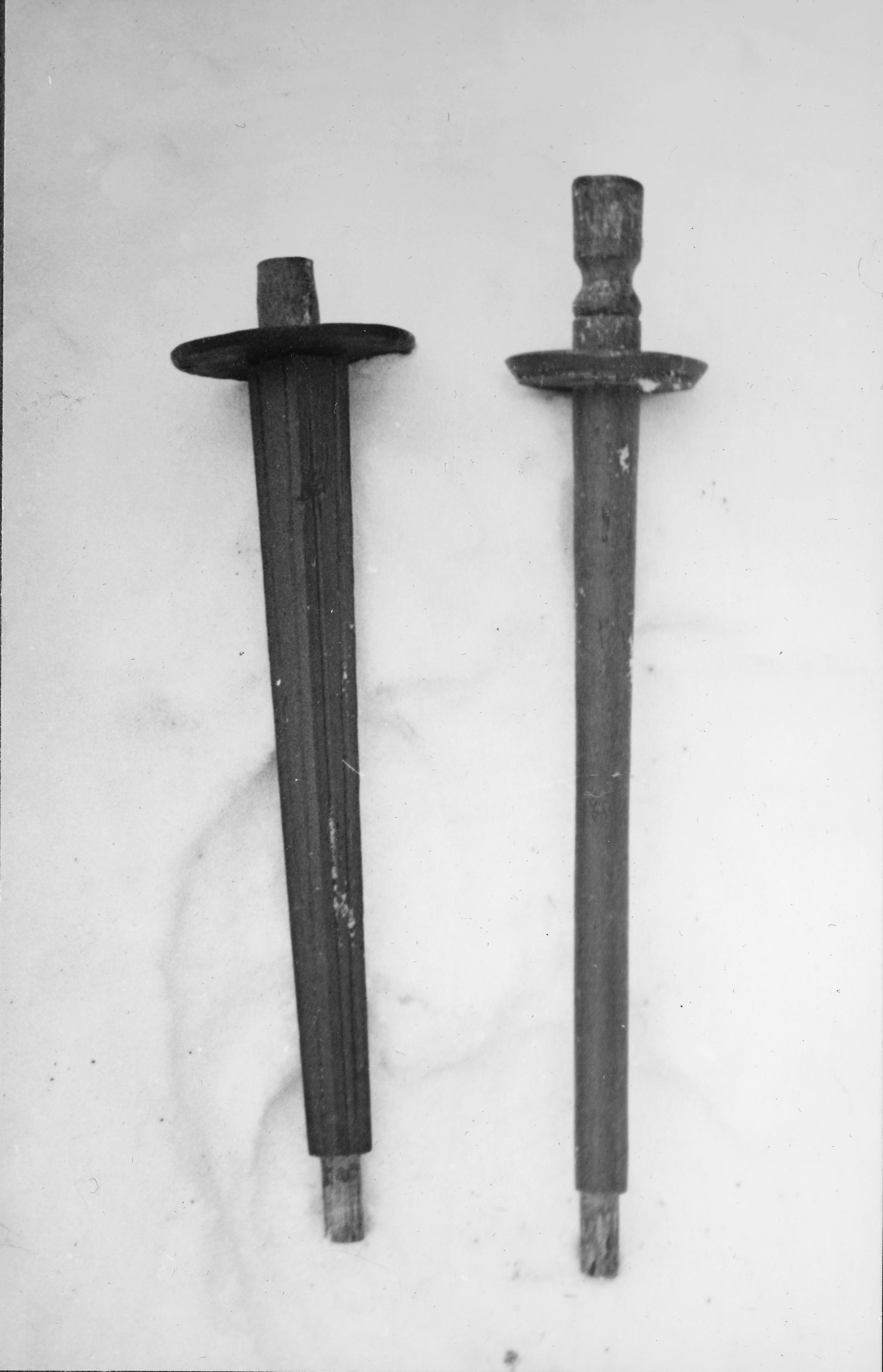 Ljushållare, den vänstra från 1831, svarvad, den högra från 1843, fyrkantig.