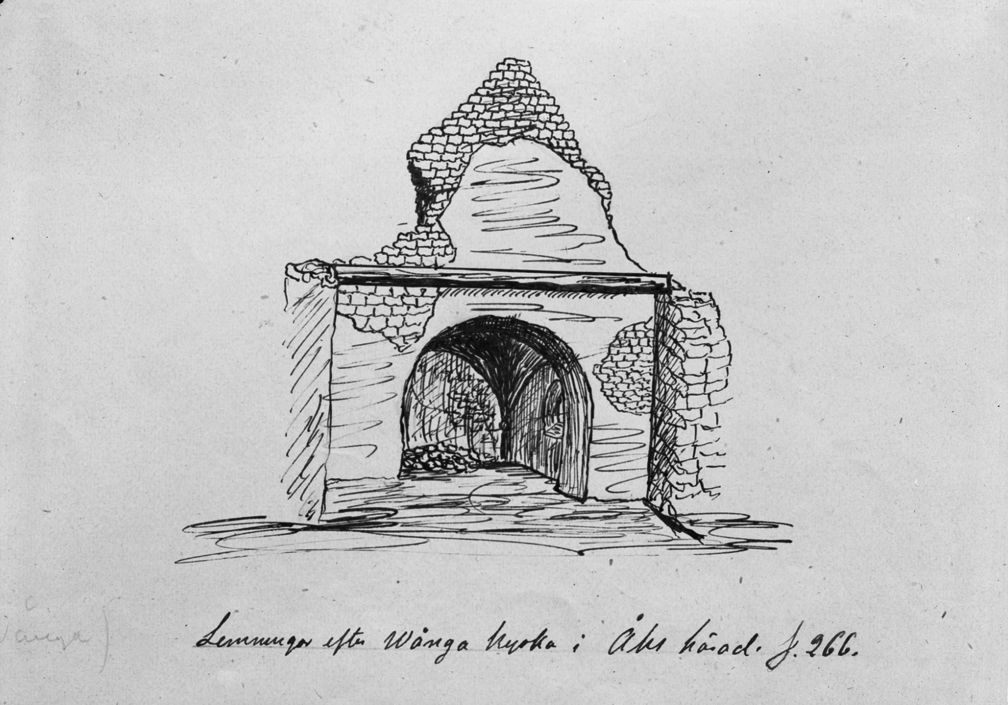 Del av kyrkoruinen. Foto efter teckning ur Djurklou: Elfsborgs län, 1868.