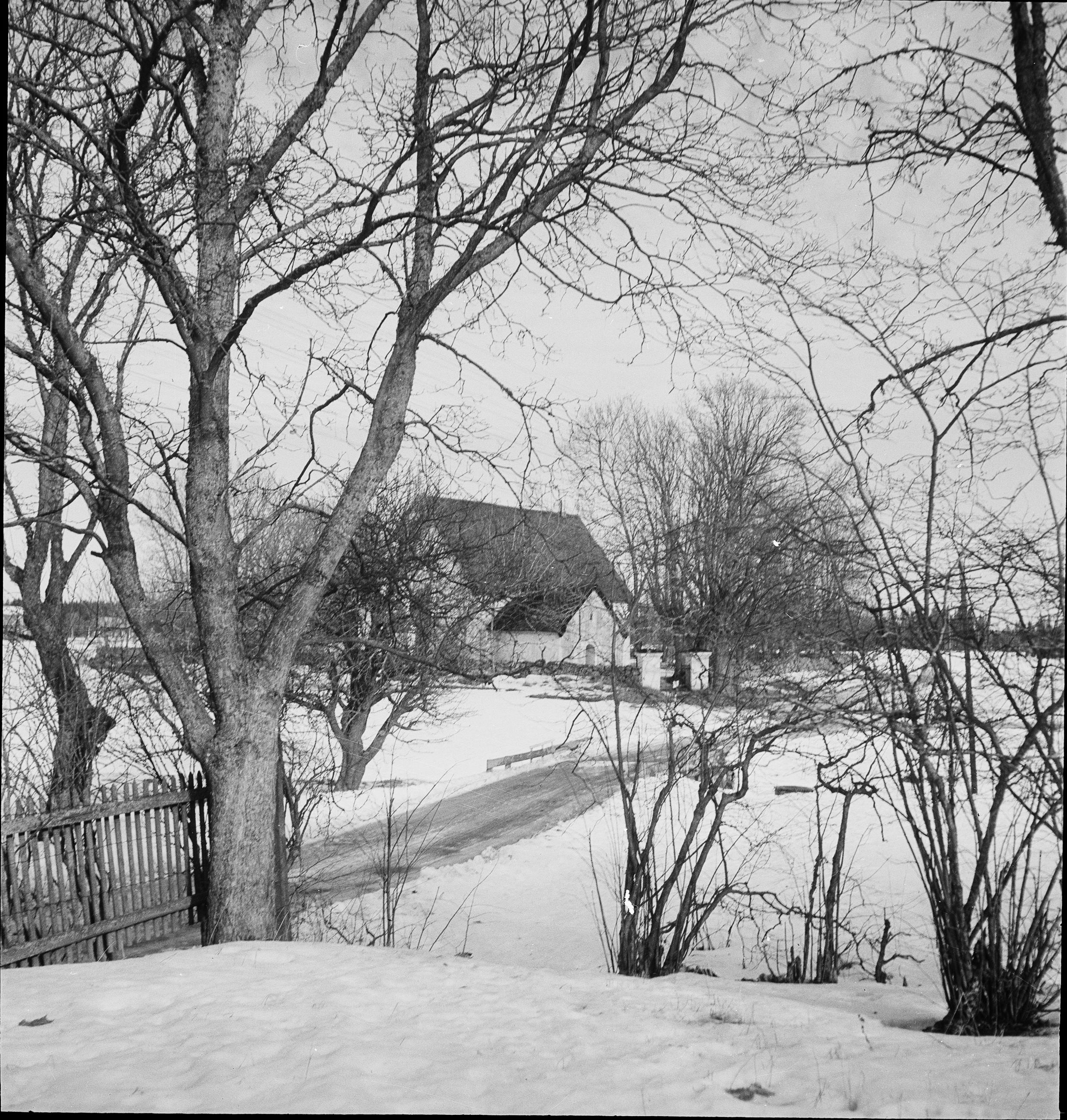 Kyrkan och dess omgivning mot sydväst.
