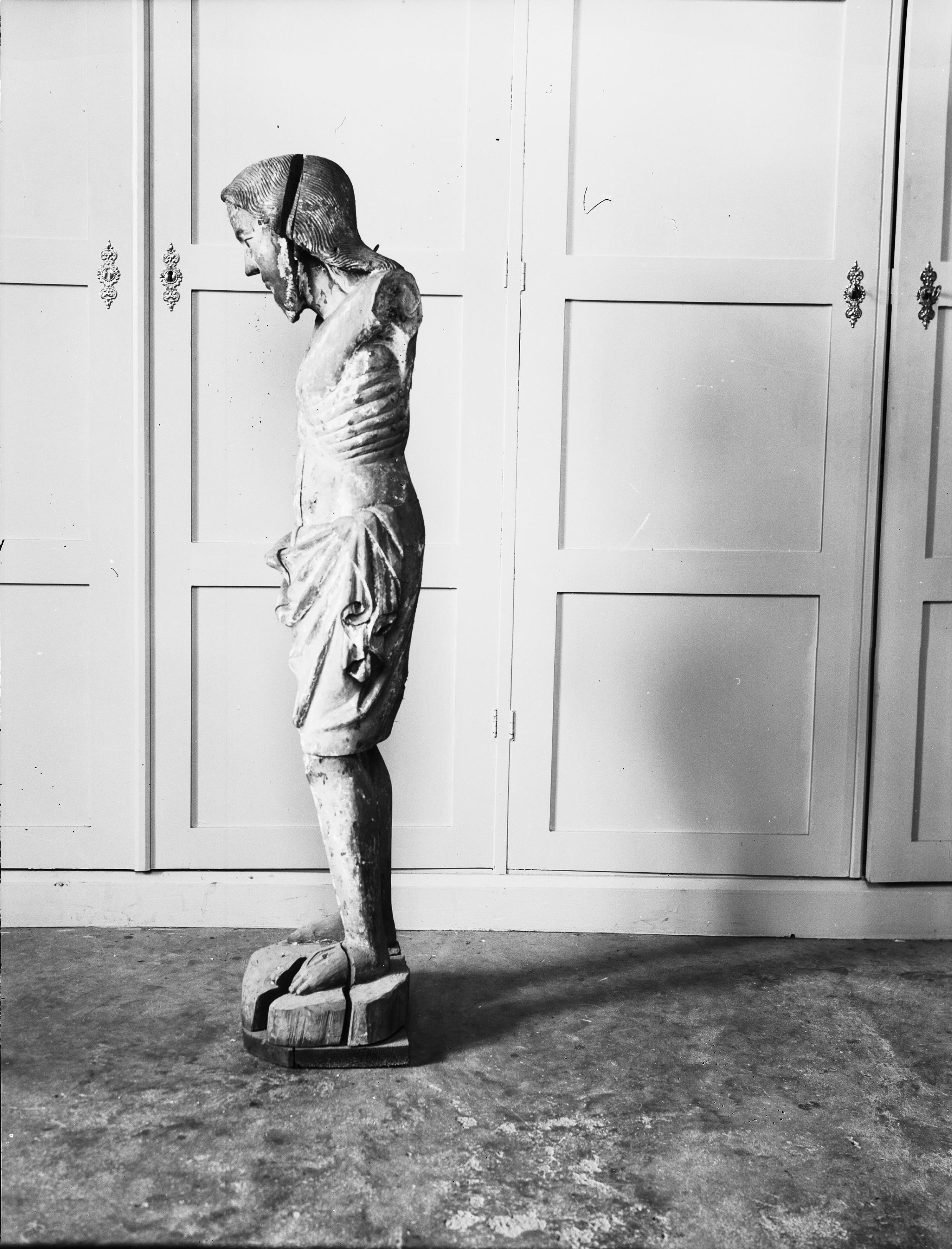 Beskrivning: Skulptur, trä, Kristus som smärtoman, 1400-talet.