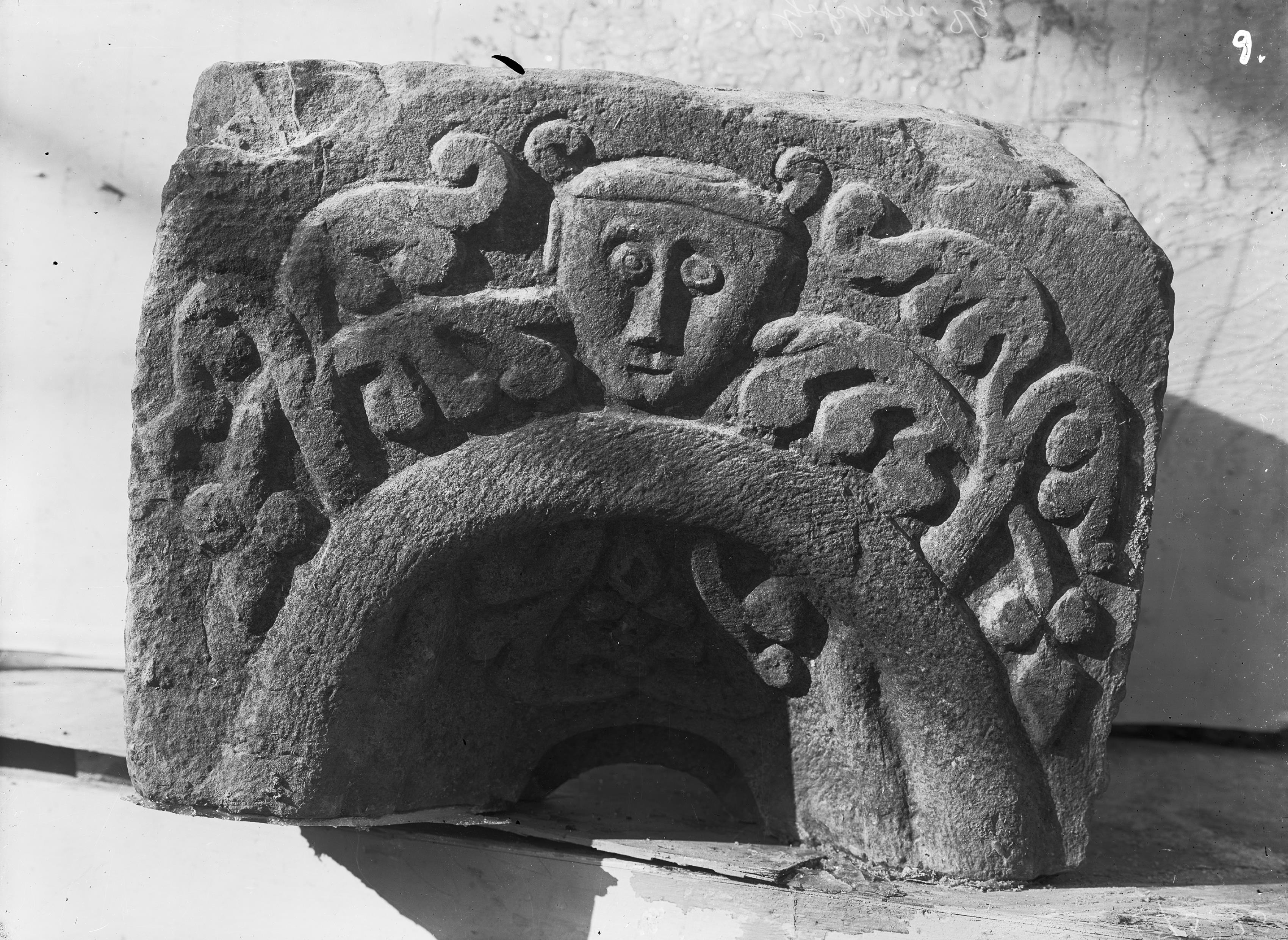 Fönster, skulpterad sten, mitten av 1100-talet.
