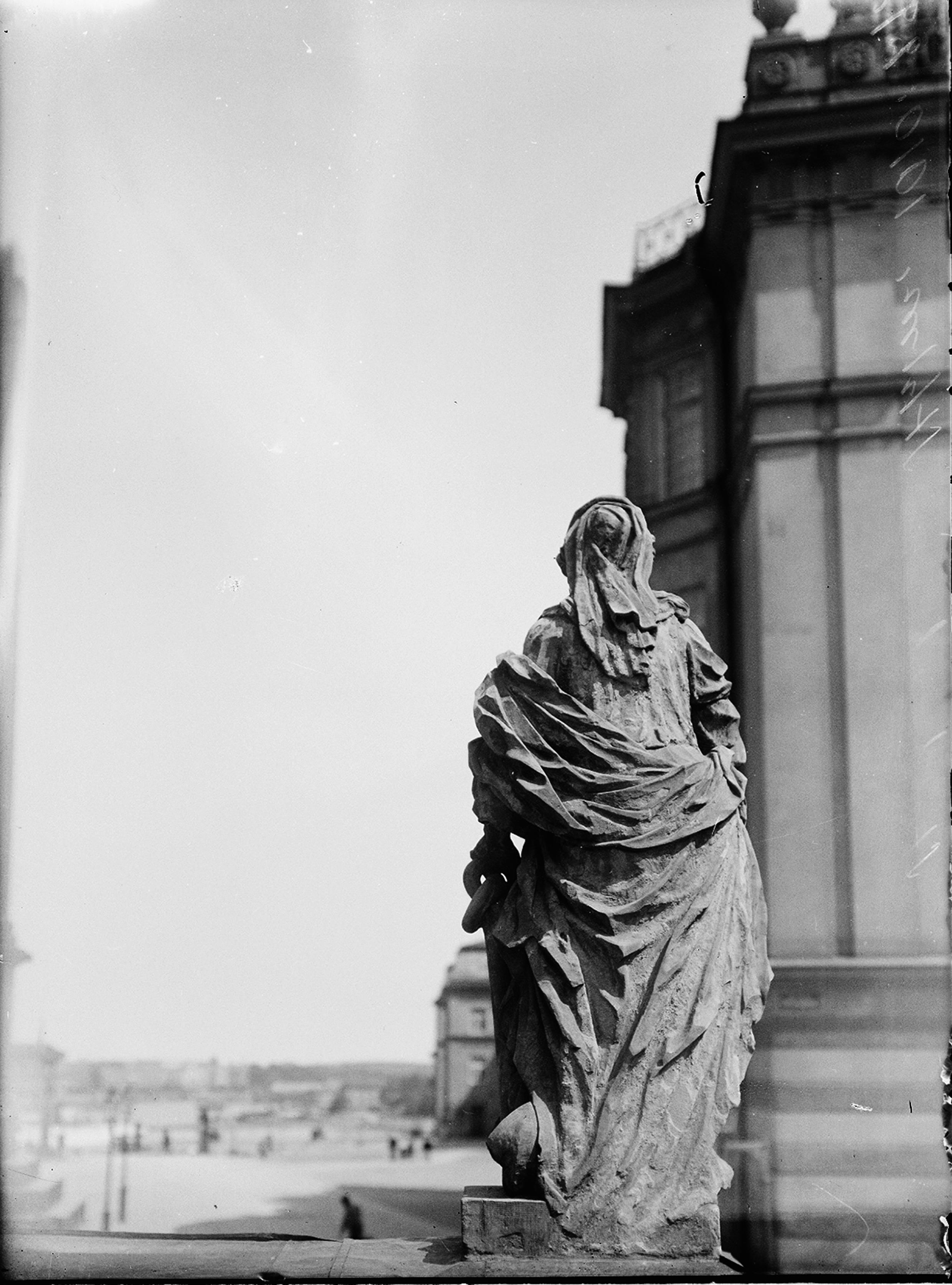 Östra kyrkogårdsingången, allegorisk skulptur föreställande Hoppet, av Daniel Kortz 1702.