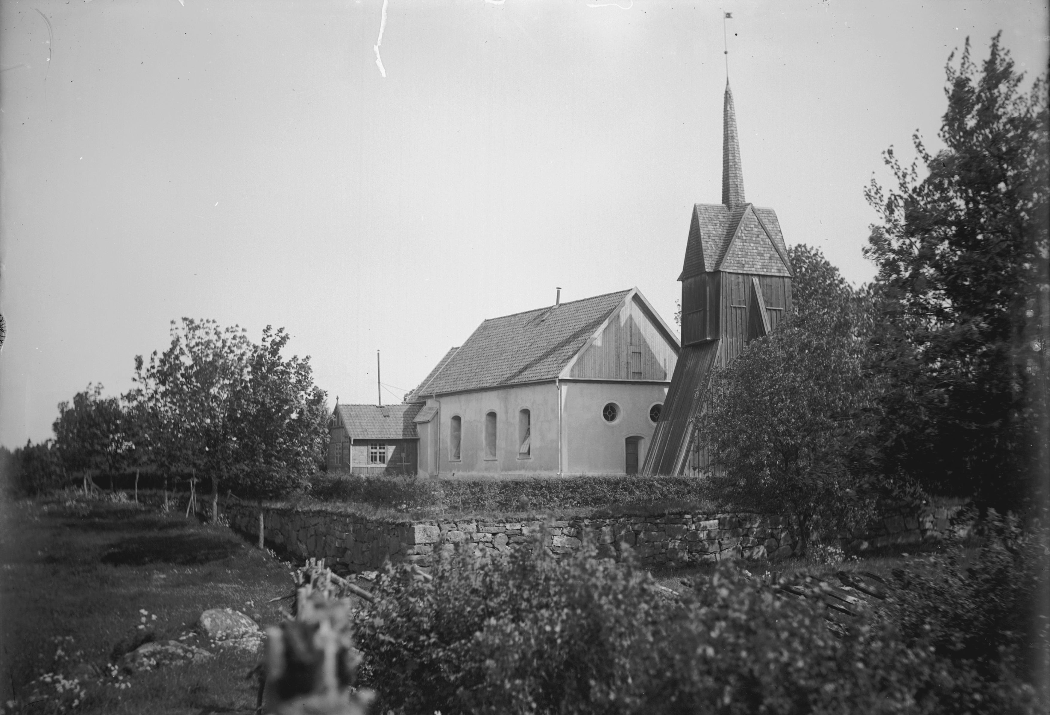 Kyrkan och klockstapeln mot nordväst.