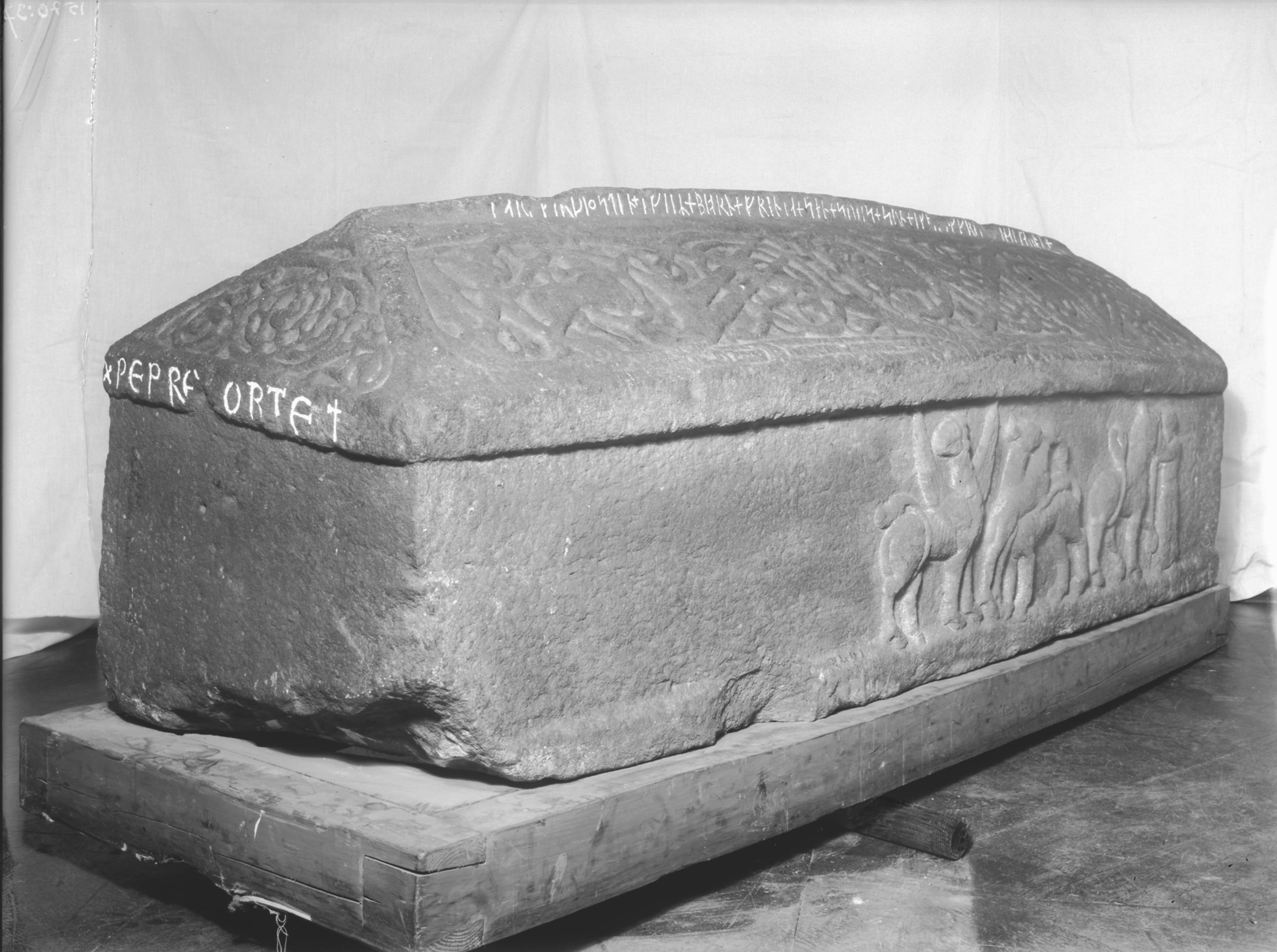 Botkyrkamonumentet. Gravvård av sandsten med grundform av en kyrka. 1100-talets första hälft.