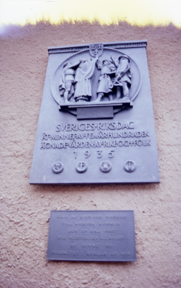 "Sveriges Riksdag åt minnet av fem århundraden ägnade vården av rike och folk 1935".