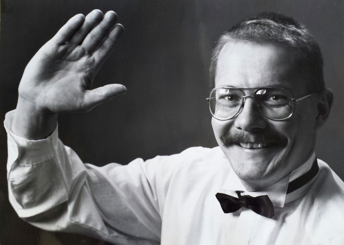 Porträttbild tagen i revysammanhang.