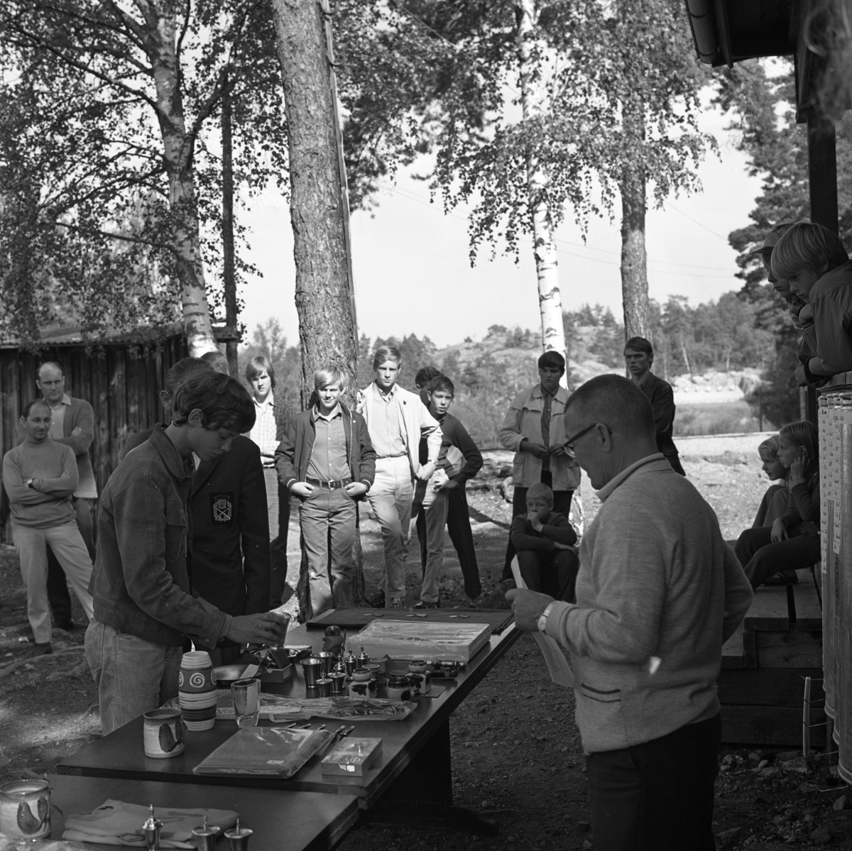 Prisbordet är dukat utomhus. Flera ungdomar och några vuxna är samlade.
